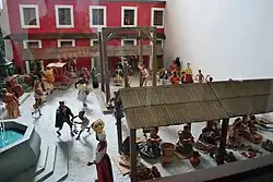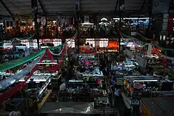 Attempts to regulate the tianguis commerce in the Zocalo led to the establishment of several formal markets. However, these markets would never eliminate tianguis commerce in the plaza.[10] The first formal market was the El Parían in 1703, after a major fire in the city. It was originally established as a common market, with all of the Zocalo's vendors inside. However, the building was not large enough, and the structure's space requirements pushed remaining outside vendors into the areas belonging to the cathedral and government building.[10] This market then became space for the various guilds of the city to market their wares.[4] By the end of the 18th century, it would become the market for the upper Spanish and Criollo classes, selling imported merchandise such as that brought be the Manila Galleon.[10][25] This was the market's height. After this time, it would slowly decay until it was demolished in 1843.[10]