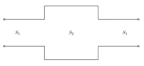 Considering we have the most simplest reactive silencer with only one expansion chamber (length l and cross-sectional area S2), with inlet and outlet both having cross-sectional area S1). As we know the transmission matrix of a tube (in this case, the expansion chamber) is[3]