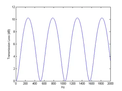 where is the ratio of the cross-sectional areas and is the length of the chamber. is the wave number while is the sound speed. Note that the transmission loss is zero when is a multiple of half a wavelength.