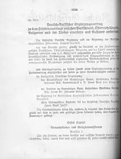 ![]() Scan from the Reichsgesetzblatt of Germany, 1918, containing a copy of the first page of the Treaty of Berlin of 27 August 1918. | |