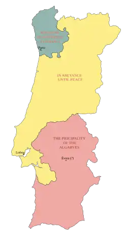 Control of the provinces of Beira, Tras-os-Montes and Portuguese Estremadura would remain in abeyance until a general peace occurred, whereupon they would be disposed of according to a further agreement between the treaty parties.[2]