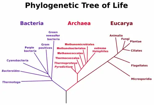 22. ^ a b Woese, Carl R.; Kandler, Otto; Wheelis, Mark L. (1990). "Towards a natural system of organisms: proposal for the domains Archaea, Bacteria, and Eucarya". PNAS. 87 (12): 4576–4579. Bibcode:1990PNAS...87.4576W. doi:10.1073/pnas.87.12.4576. PMC 54159. PMID 2112744.