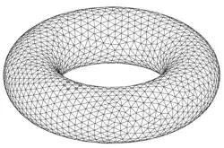 The 2-dimensional sphere and a triangulation - The torus admits a triangulation. To see this, consider the torus as a square where the parallel faces are glued together. A triangulation of the square that respects the gluings, like that shown below, also defines a triangulation of the torus.