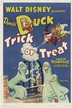 Trick or Treat is a 1952 animated short film produced by Walt Disney Productions and released by RKO Radio Pictures.[2] The cartoon, which takes place on Halloween night, follows a series of pranks between Donald Duck and his nephews with Witch Hazel. The film was directed by Jack Hannah and features the voices of Clarence Nash as Donald and his nephews, and June Foray as Hazel.
