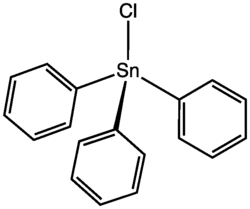 Triphenyltin chloride is an organotin compound with formula Sn(C6H5)3Cl. It is a colourless solid that dissolves in organic solvents and slowly reacts with water.