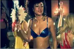 In the scenes of the house party, Nikki's hair is an afro with cornrows in one side, and is wearing a blue outfit and make-up while she is partying with her friends. In the scenes that are the morning after, Nikki appears more normal and she is wearing a grey shirt. Her apartment is empty except for herself and one other man, who is in her bed.