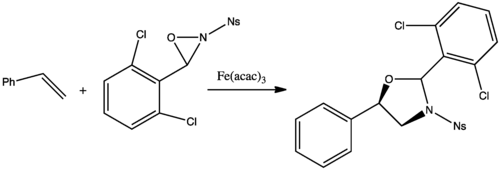 Fe(acac)3 also catalyzes the ring-opening polymerization of 1,3-benzoxazine.[7] Beyond the area of polymerization, Fe(acac)3 has been found to catalyze the reaction of N-sulfonyl oxaziridines with olefins to form 1,3-oxazolidine products.[8]