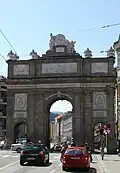 The Triumphal Arch (German: Triumphpforte) is one of the best known sights in the Austrian city of Innsbruck. It is located at the southern end of the present Maria-Theresien-Straße, once the southern road out of the city.