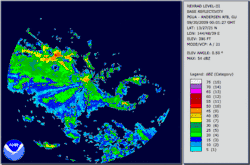 Weather radar loop of Tropical Depression 18W's rainbands passing Guam shortly before dissipating
