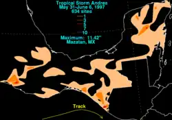 - ^ David M. Roth (2009). "Tropical Storm Andres - May 31-June 6, 1997". Hydrometeorological Prediction Center. Retrieved 2010-02-05.