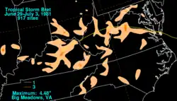 - ^ "Tropical storm breaks up in Virginia". Miami Herald. Miami, Florida. July 2, 1981. p. 2A. Retrieved September 9, 2021 – via Newspapers.com.