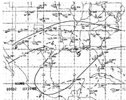 2. ^ Arnold L. Sugg, Miami Weather Bureau (1965-09-25). "Tropical Depression Advisory Number 1 Debbie" (GIF). National Hurricane Center. Retrieved 2011-10-20.