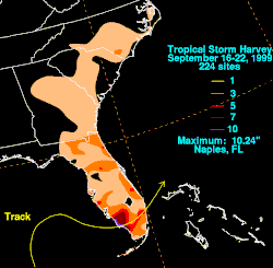 - ^ a b David Roth (April 24, 2007). "Tropical Storm Harvey - September 16–22, 1999". Hydrometeorological Prediction Center. Retrieved April 14, 2010.