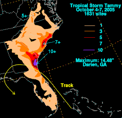 - ^ "Tammy causes flooding in south Georgia". St. Petersburg Times. Associated Press. October 7, 2005. Retrieved September 29, 2008.