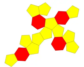 The pentagons of this polyhedron cannot be regular pentagons, because if they were then the hexagonal faces would not be flat. As a polyhedron that has near-regular but not regular faces, it is an example of a near-miss Johnson solid, "the closest near miss with higher than prismatic symmetry".[9]