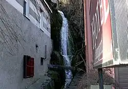 Although the river is only 1.5 kilometres (0.93 mi) long, it has an interesting feature: At one point its waters drop through a height of 12 metres (39 ft) forming the Weissbach Fall, which is audible and visible from the nearby street. A small hotel has built a power plant there and uses the electricity generated for domestic requirements. Around the basin are canals, which divert the water in case of emergency.
