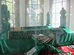 There are two wooden coffins in the turbe, each consisting of a sarcophagus with a nišan tombstone. There is no inscription on the turbe itself, or on the nišan tombstones, but they are decorated with numerous ornaments in the form of twisted ribbons.[1]
