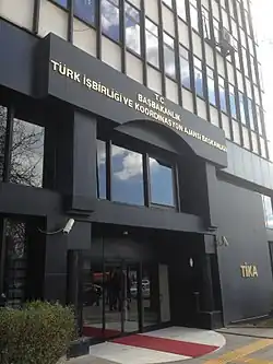 The Turkish Cooperation and Coordination Agency (Turkish: Türk İşbirliği ve Koordinasyon İdaresi Başkanlığı, TİKA) is a government department subordinate to the Ministry of Culture and Tourism (Turkey).[1] Focusing on development cooperation, TİKA works in more than 150 countries.[2] It also goes by the name Turkish International Cooperation and Development Agency. TİKA is responsible for the organization of the bulk of Turkey's official development assistance to developing countries, with a particular focus on Turkic and African countries and communities. According to the OECD, 2020 official development assistance from Turkey increased by 1.2% to US$8 billion.[3] As of January 2022, TİKA has undertaken 30,000 projects worldwide.[4]