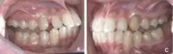 In Angle's classification system for malocclusion, a Class II bite (Figure 1) occurs when the lower jaw (mandible) is positioned more behind relative to the upper jaw (maxilla). This misalignment means that when the teeth come together, the lower teeth bite significantly behind the upper teeth[2] creating a large horizontal gap between upper and lower teeth. It is defined as increased overjet, which is measured from the labial surface of the tips of the upper incisors to the labial surface of the lower incisors horizontally.[3]