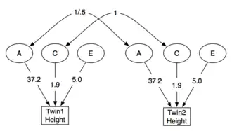 An example structural model (for the heritability of height among Danish males)[18] is shown: