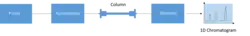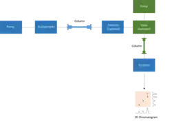 Two-dimensional chromatography is a type of chromatographic technique in which the injected sample is separated by passing through two different separation stages. Two different chromatographic columns are connected in sequence, and the effluent from the first system is transferred onto the second column.[1] Typically the second column has a different separation mechanism, so that bands that are poorly resolved from the first column may be completely separated in the second column. (For instance, a C18 reversed-phase chromatography column may be followed by a phenyl column.) Alternately, the two columns might run at different temperatures. During the second stage of separation the rate at which the separation occurs must be faster than the first stage, since there is still only a single detector. The plane surface is amenable to sequential development in two directions using two different solvents.