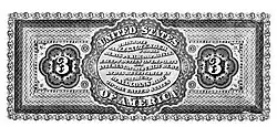 A three dollar bill was proposed two times during the 1860s. A design was engraved for a potential $3 United States Note, and a 1865 law called for a $3 National Bank Note, but neither proposal came to fruition.