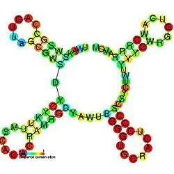![]() Predicted secondary structure and sequence conservation of Tymo_tRNA-like | |