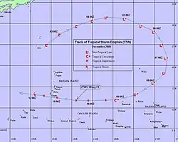 - ^ a b c d "JTWC Best Track:Dolphin". Joint Typhoon Warning Center. Retrieved 2008-12-17.