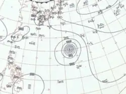![]() Surface weather analysis of Typhoon June at peak intensity in the open Pacific Ocean on September 7 | |
