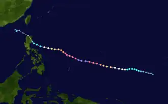 Typhoon Maysak, known in the Philippines as Super Typhoon Chedeng, was the most powerful pre-April tropical cyclone on record in the Northwestern Pacific Ocean.[1][2] The fourth named storm of the 2015 Pacific typhoon season, Maysak originated as a tropical depression on March 26. The next day, the Japan Meteorological Agency (JMA) upgraded the depression to a tropical storm and assigned it the name Maysak. According to the JMA, Maysak became the second typhoon of the year on March 28. The typhoon underwent explosive intensification into a Category 5 super typhoon on March 31, passing near the islands of Chuuk and Yap in the Federated States of Micronesia. After maintaining that intensity for 18 hours, Maysak weakened, made landfall over the Philippine island of Luzon as a minimal tropical storm, and dissipated shortly afterwards.