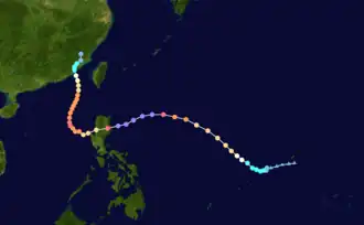 Megi killed 31 people and caused $255.1 million (2010 USD) in damage over Luzon, making it top twenty of the costliest typhoons in the Philippines.[3] After moving to the South China Sea, the outflow of Megi and a weather front together brought torrential rainfall, caused $42.2 million (2010 USD) in damage and killed 38 people in Yilan, Taiwan, making Megi the deadliest typhoon of 2010s in Taiwan.[4] Megi also caused $411.7 million (2010 USD) in damage over Fujian, China, although there were no deaths by the storm in the province.[5]