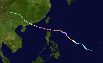 Despite that, on November 5, Pamela re-intensified into a super typhoon over the South China Sea,[2] becoming the first of only four super typhoons in the area—the others were Yagi in 2024, Rammasun in 2014, and Rai in 2021.[5] The next day, Pamela made landfall in China as a minimal typhoon. As a result, early on September 7, Pamela weakened into a tropical storm,[2] prior to the JMA last tracking the typhoon a few hours later.[1] The FWC kept tracking it until it had weakened into a tropical depression early the next day.[2]