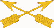 In 1890 the Scouts were authorized to wear the branch of service insignia of crossed arrows.[15] In 1942 the insignia was authorized to be worn by the 1st Special Service Force. As their traditions passed into the U.S. Army Special Forces, the crossed arrows became part of their insignia being authorized as branch of service insignia in 1984.
