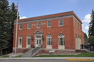 The Kemmerer Main Post Office in Kemmerer, Wyoming was built in 1934 as part of a facilities improvement program by the United States Post Office Department. The post office in Kemmerer was nominated to the National Register of Historic Places as part of a thematic study comprising twelve Wyoming post offices built to standardized USPO plans in the early twentieth century.[2]