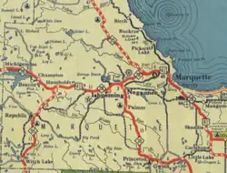 - ^ Michigan State Highway Department (July 1, 1919). State of Michigan (Map). Scale not given. Lansing: Michigan State Highway Department. Upper Peninsula sheet. OCLC 15607244. Retrieved December 18, 2016 – via Michigan State University Libraries.