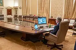 On January 27, then-acting chief of staff Mick Mulvaney convened a meeting with White House aides to draw greater attention to the virus among senior officials.[14] Two days later, on January 29, President Trump established the White House Coronavirus Task Force, led by Secretary Azar, to coordinate and oversee efforts to "monitor, prevent, contain, and mitigate the spread" of COVID-19 in the United States.[15][16][17] On February 26, Trump appointed Vice President Mike Pence to take charge of the nation's response to the virus.[18]
