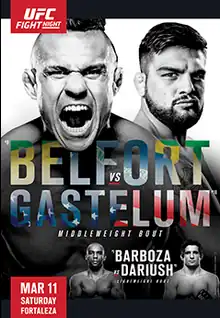 UFC Fight Night: Belfort vs. Gastelum (also known as UFC Fight Night 106) was a mixed martial arts event produced by the Ultimate Fighting Championship held on March 11, 2017, at the Centro de Formação Olímpica do Nordeste in Fortaleza, Brazil.[2]