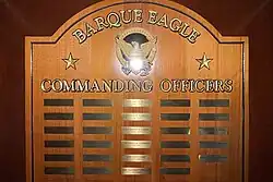Plaque of Eagle COs in Eagle's flag cabin as of 2020