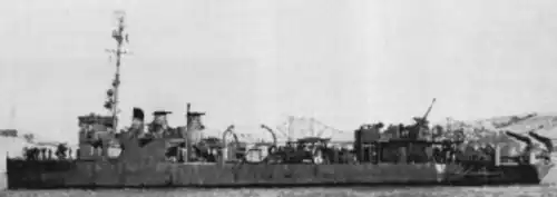 Arriving to the Mare Island Navy Yard in California in October 1940, Chandler was converted there into a destroyer minesweeper, and was reclassified DMS-9 on 19 November 1940. As part of her conversion, her number 4 boiler, her fourth funnel, and her torpedo tubes were removed, her depth charge racks were repositioned forward from the stern and angled outboard, and her stern was modified to support minesweeping gear, including davits, a winch, paravanes, and kites. Two 60-kilowatt turbo generators replaced the three original 25-kilowatt electric generators to improve her capability for sweeping magnetic and acoustic mines.[1]