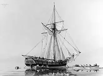 USS Hornet was a 10-gun sloop of the Continental Navy. She was chartered from Captain William Stone in December 1775 to serve under Stone in Commodore Esek Hopkins. The voyage would be the first military action for master's mate Joshua Barney.[1] The vessel was damaged while sailing with the fleet and returned to base. Hornet patrolled Delaware Bay until being captured on 27 April 1777 by the Royal Navy. Hornet was taken to Jamaica, where the ship was found to be leaking and was condemned.