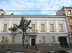 In the city of Chernihiv, which had been under siege since 24 February, the Vasyl Tarnovskyi House of the Museum of Ukrainian Antiquities was almost completely destroyed on 11 March.[54] The Gothic Revival-styled Chernihiv Regional Youth Library was damaged to an extent. On 6 March, the Chernihiv Regional Art Museum was shelled the same day as the Chernihiv Literary Museum-Reserve was damaged. Damage was also reported to the Building of the Chernihiv Regional Youth Center, Hotel Ukraine, and a museum branch dedicated to the military, whose contents had previously been sealed in a vault.[55] The Korolenko Chernihiv Regional Universal Scientific Library was bombed on 30 March, resulting in damage to its library.[56]