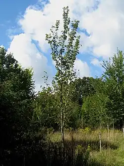 Vada has moderate vigour, attaining a height of 14 m at 20 years of age in France.[3] The tree is reputedly easily propagated from cuttings. Vada was introduced to North America in 2010, with the supply of two small specimens to the USDA, Washington, D.C., released from quarantine in 2013. Vada is reported "the most successful so far" (2021) of a 2014 trial planting of elms at Lees Court, Kent.[8] Among urban introductions in the UK are three specimens, planted in 2014, towards the east end of Broad Walk, Christ Church Meadow, Oxford,[8][9] and four in Inverleith Park, Edinburgh, planted c.2012. 300 VADA were planted circa 2019 in the Parc de Sceaux, southern Paris, and early in 2021 92 were planted in the jardin des Tuileries.[10] Vada is not known to have been introduced to Australasia.