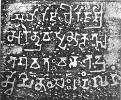 1. ^ The rock inscription came into view when an old banyan tree was uprooted. (Sircar 1971, p. 79) The first report on the artifact was published by R. M. Nath (Sharma 1978, p. 1)