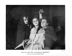 Unheimliche Geschichten was directed, produced and co-written by Richard Oswald.[1] The film stars Anita Berber, Reinhold Schünzel and Conrad Veidt as the Harlot, the Devil and Death in the opening sequence, but they also play various other roles in each of the five stories.[1][5] Each story was based on an author's work, including Anselm Heine (The Apparition, 1912), Robert Liebmann (The Hand), Edgar Allan Poe (The Black Cat, 1843), Robert Louis Stevenson ("The Suicide Club", 1878) and Richard Oswald's own contribution (Der Spuk/ The Spectre).[1]