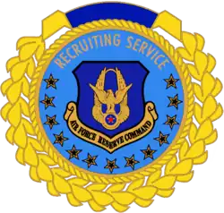 An earned AFRC recruiting service badge is authorized for permanent wear by Airmen with an 8R special duty identifier in their records.[15]