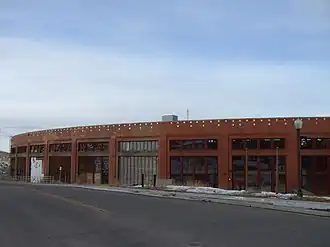 The Union Pacific Railroad Complex in Evanston, Wyoming, was built to serve the Union Pacific Railroad main line running through Evanston. The complex's brick buildings were built in 1912–13, with frame buildings spanning the period from 1871 to the 1920s. The complex features a roundhouse with 27 stalls built during the 1912 improvement phase, replacing an earlier roundhouse built in 1871. The complex was the chief service point on the UP main line between Ogden, Utah, and Green River, Wyoming.[2]