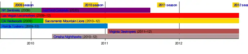 - ^ Known as the New York Sentinels in 2009