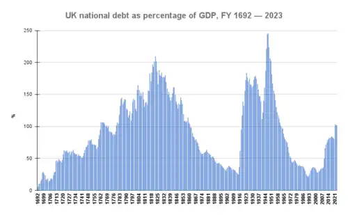- ^ a b c "UK National Debt". Economics Help. 10 January 2025. Retrieved 12 June 2025.