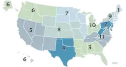 United Network for Organ Sharing and Organ Procurement and Transplantation Network operate by grouping states into several different regions throughout the country.[15]