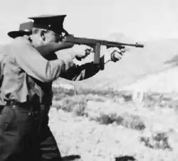 A Border Patrol agent practice firing a Thompson submachine gun near El Paso in 1940